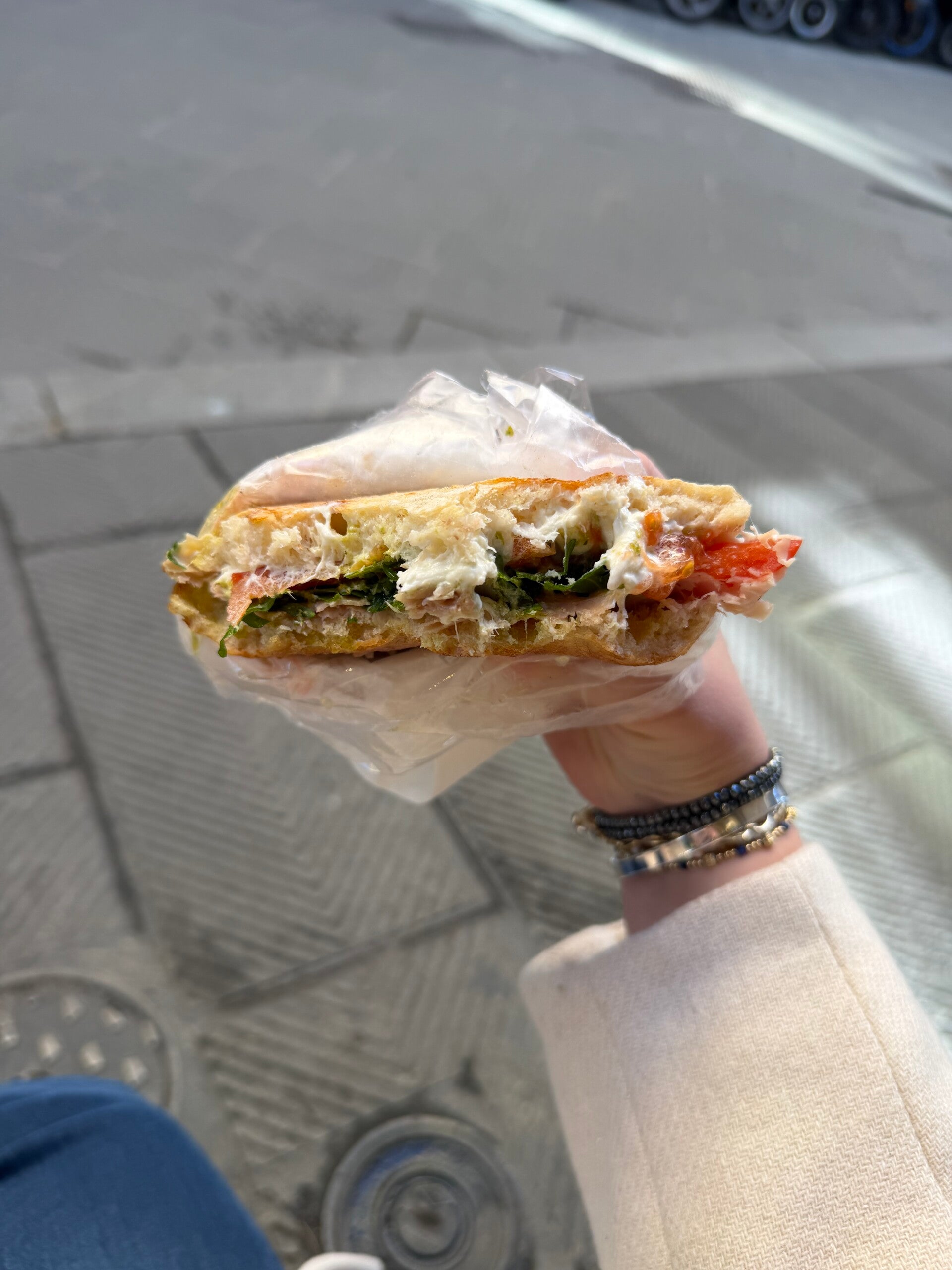The week of classes itself was pretty standard with a few notable new discoveries! I painted my first still life in oil and am getting the hang of oil painting. It's quite different from acrylic and I haven't decided which I like better. But, it has been refreshing to find time for my art again! Next discovery was the pesto roso sauce from Conad. We have been on a sauce tour of Florence to find the best, and I have to say this sundried tomato pesto takes the lead. However, Coco had an allergic reaction to the pine nuts about 5 minutes after eating it which detracted from the lure of the moment (shes fine, just was itchy for a few days and sad she could never indulge herself int he best canned sauce again). Third discovery was Amici's at Ponte Vecchio, our new go to schiacciata place by the Ponte Vecchio. Stefano, the owner, is the actual GOAT and has so many good flavors hes been curating for over 20 years! Safe to say we go every tuesday thursday now. I also discovered Giunti Odeon, the once cinema-converted bookstore that serves as a wonderful place for students and aritsans to gather in the afternoon! I also had my first Florentine steak of abroad at Trattoria 13Gobi, and it did not dissapoint one bit. Diana and Coco and I sat there for hours just talking in a restaurant with no service practicing the true Italian art of slowing down!